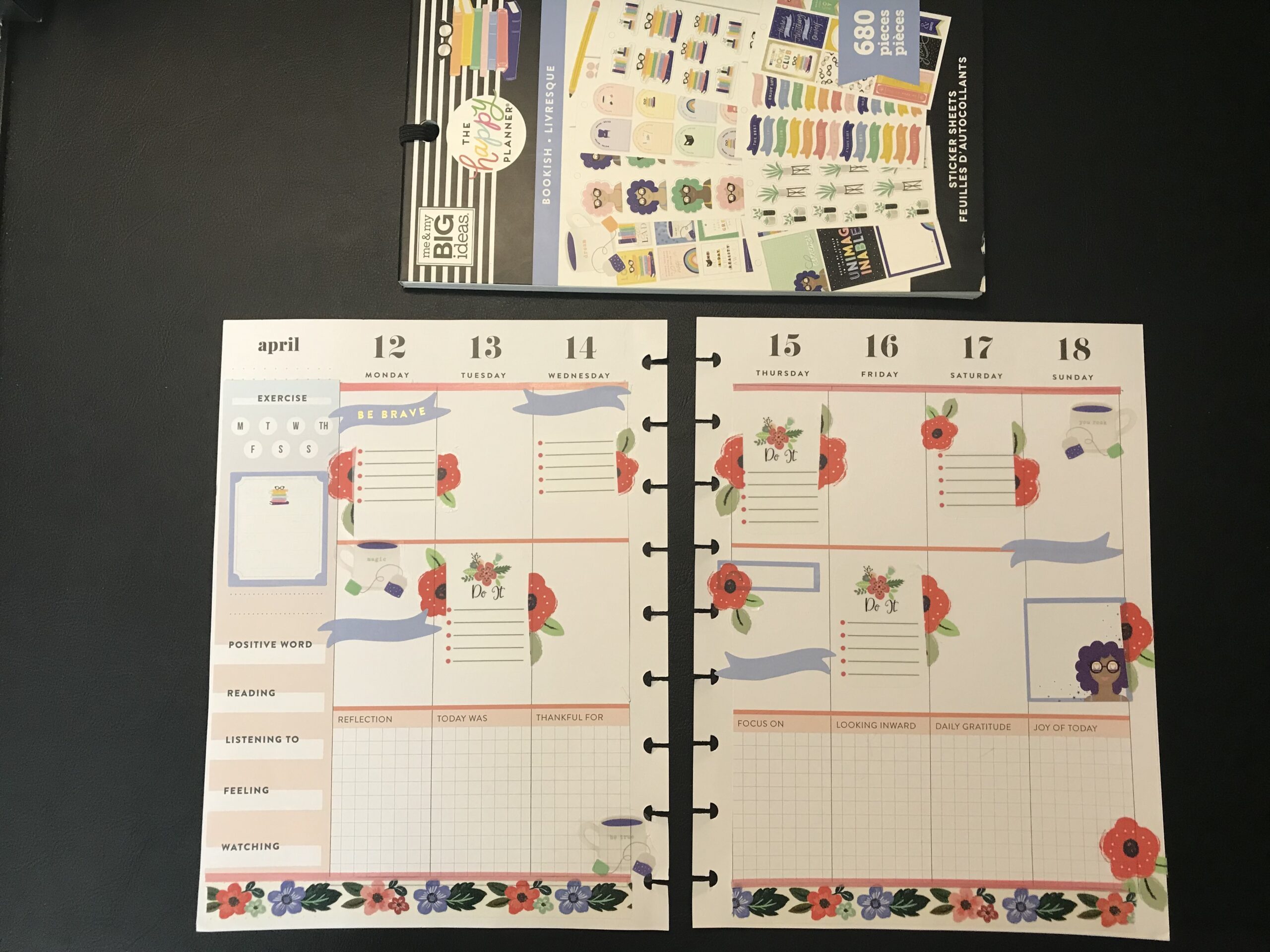 We settled on a goal that I will take ten minutes each day to do one of three things I enjoy that bring me joy: reading, coloring in adult coloring books, and doing decorative planning in my paper planner with stickers and washi tape.
